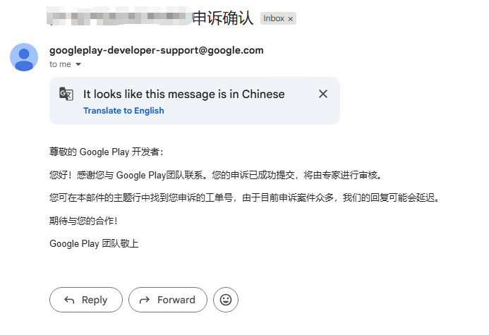 6. 这是提前提交后,Google官方的回复: